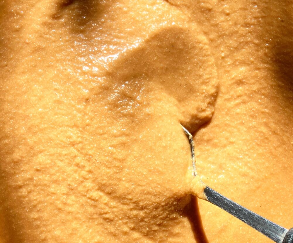考えてみれば、人がおいしいと感じる多くの部分は視覚によるもの、という説を読んだことがある。おいしいと感じて、いざ食べて確認するということなのか。もっとも、見た目が良くても味が伴わない場合もあるから作り手は要注意。中身あってこそだから、見た目にばかりとらわれてはいけない。ちなみに、一番の見た目を作るには、手触りのある色と素材感を見つけ出すことだと思う。