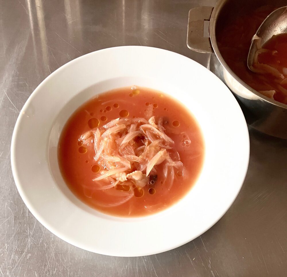 出来上がりをすでに食べたような表現は謎ではあるが確信に満ちていて、味が保証されたような安堵感があった。「おいしい」を短くつぶやく味の預言者に導かれるようにして全員で食べた撮影後のスープは、作り手としてはこれでよかったのだという証明のような味わいだった。