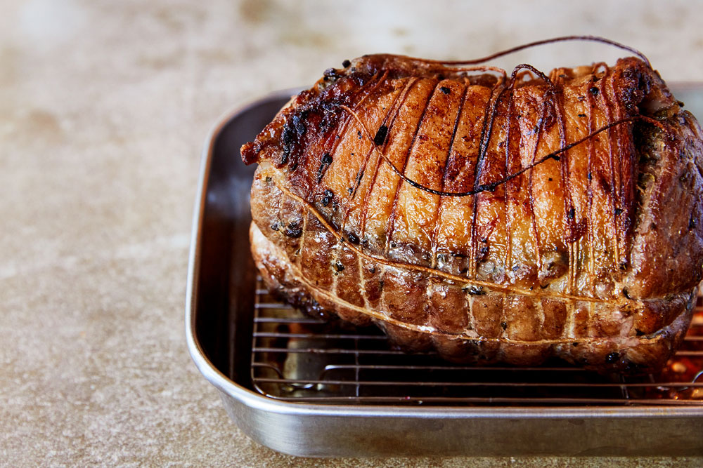 オレガノやセージ、ローズマリー、フェンネルシードをニンニクオイルと巻き込んだ「常陸の輝き」のポルケッタ。58℃でじっくり火を入れてから焼き上げ、脂も赤身もしっとりと一体感がある。