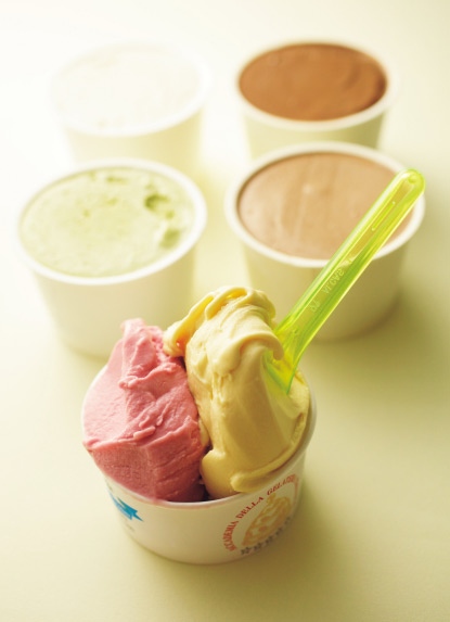 ジェラートに出合ったのは、生産者巡りの道すがら。「お金もないから、レストランにはなかなか入れなくて。食事はバールでパニーノ、デザートにジェラート」。果物のペーストを使う店が大半を占める中、まれに土地の食材を生かした、はっとするおいしさのジェラテリアがあった。