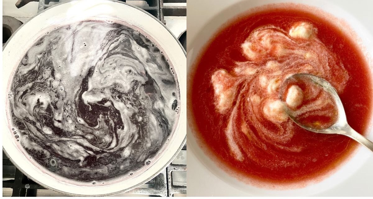 展示では、同じ野菜の染めの工程と映像が並んでいるが、どっちがどっちかわからないような感じ、という感想を聞いた。