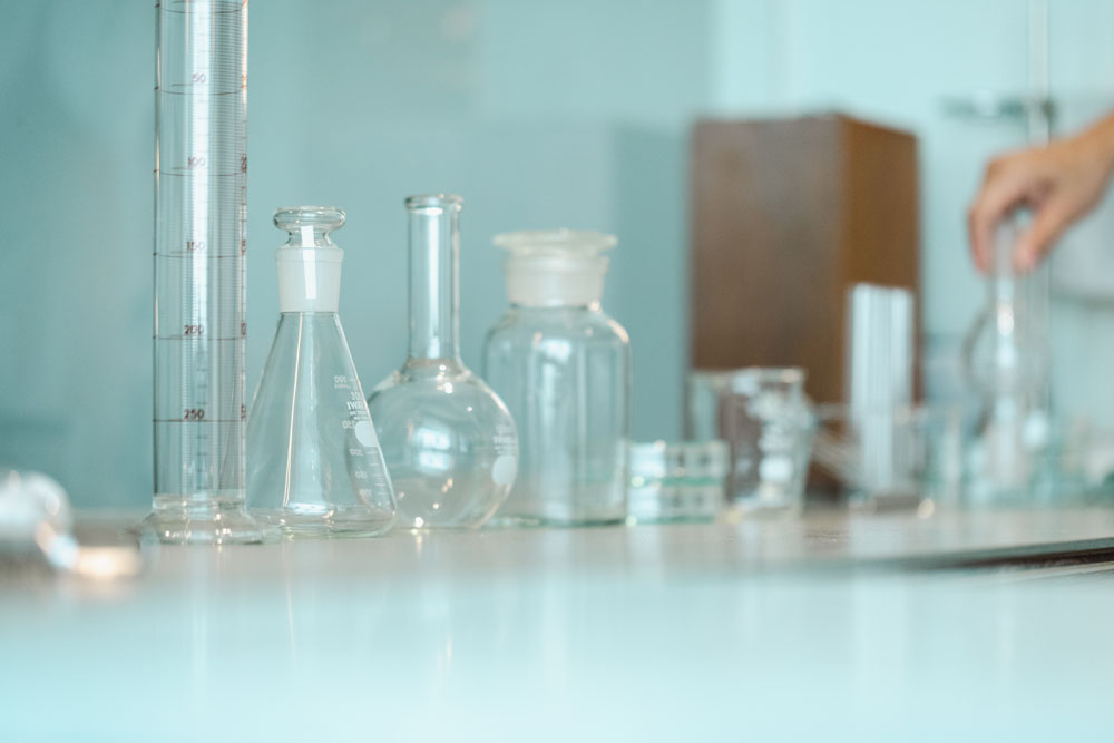 ビーカー、フラスコ、シリンダー、シャーレ、薬瓶・・・実験・研究機材には専門性の高い道具が放つ輝きがある。郷愁を誘うのも魅力。