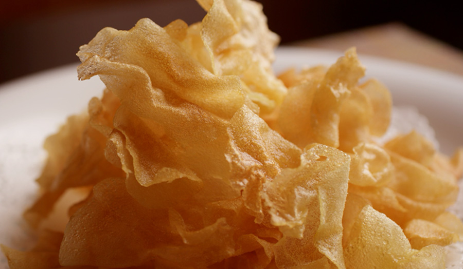 豚モモ肉は脂肪分が少なく、さっぱりとコク深い味わい。筋繊維が発達しており、きめ細かく、しっかりとした歯応えも魅力。強いて言えば肉が締まりやすいので、ボイル温度にはより気をつけたい。